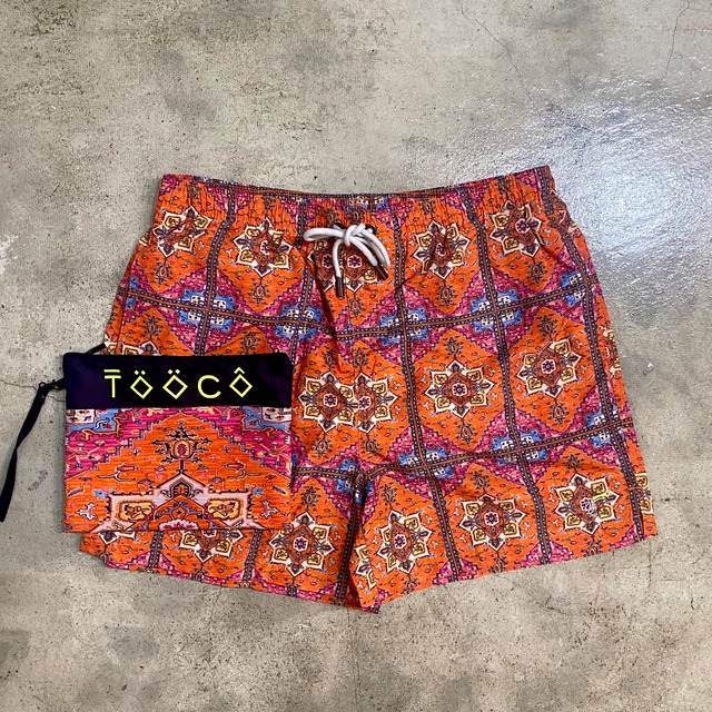 イタリアのカジュラルブランド TOOCO(トーコ)はデザイナーの Roberto が世界中をバックパ ックで旅をし様々な人に出会い各国の文化やライフスタイルに刺激を受けて立ち上げたビーチ ウエアからスタートしたアパレルブランドです。 ネイティブな伝統的なテキスタイルをコンテンポラリーに落とし込んだスイムコレクションは イタリア国内で一気に広がり話題になりいよいよ日本へ初上陸!!! 着丈は短すぎ長すぎずの大人の水陸両用スイムパンツに仕上がっており 海やプールなどの水着としてはもちろんの事、タウンユースとして街中でもご使用いただけ専用ポーチで持ち運び可能なのも人気の秘訣です。 素材 ポリエステル 100% サイズ Sサイズ ウエスト78㎝~86cm ヒップ100㎝ 股上31㎝ 丈38㎝ Mサイズ ウエスト80㎝~88cm ヒップ106㎝ 股上31㎝ 丈38㎝ Lサイズ ウエスト84㎝ ~92cm ヒップ108㎝ 股上 33㎝ 丈41㎝ *ウエストはドローコードがついておりサイズの調整が可能です。