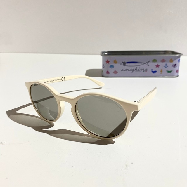 日本別注モデル サイズ:レンズ幅51mm,鼻幅20mm,テンプル長さ140mm カラー:アイボリー レンズカラー:ライトブラウンレンズ 素材:プラスチック 原産国:イタリア 付属品:ソフトケースと缶ケースが付属します。(缶の色はお選び頂けません) SARAGHINA(サラギーナ)の代表モデルGILDA。 丸みを帯びたデザインで、サイズ感も大き過ぎず小さ過ぎず男性にも女性にもとてもお使い頂きやすいモデルになっております。 すべてプラスチックで出来ている為、とても軽くて丈夫です。 こちらのアイボリーカラーは日本別注モデルになります。 ベストセラーのGILDAのフレームにトレンドのカラーレンズを組み合わせトレンド感を感じる今年の自信作です。 アイボリーホワイトとライトブラウンのレンズの配色は男女問わずオシャレのアクセントにお勧めモデルになっております。 SARAGHINA(サラギーナ)はイタリアのアドリア海沿いの海の街リミニ発のアイウェアブランドです。 ブランド名であるサラギーナとは、日本でいうイワシの一種です。 大群のイワシがキラキラと輝きながら泳ぐ様をサングラスに置き換えて考えられています。イワシはとても小さく軽く、味はとてもおいしく、価格はリーズナブル。サラギーナは一般的なアイウェアに比べて軽くて丈夫です。皆様の身近な存在になるようにイワシの特徴とリンクさせアドリア海の潮風を受けながらサラギーナは生まれました。